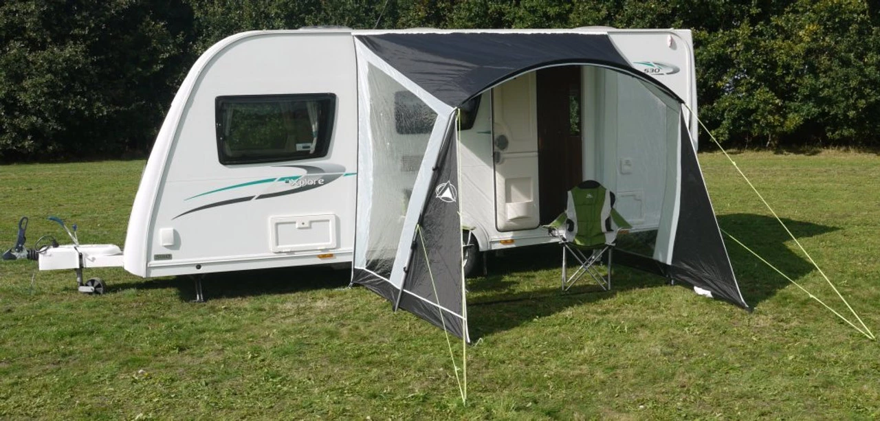 The Sunncamp Swift awning provides a simple practical porch for your caravan featuring two side doors and a roll-up front panel. This caravan awning is flame retardant and waterproof.