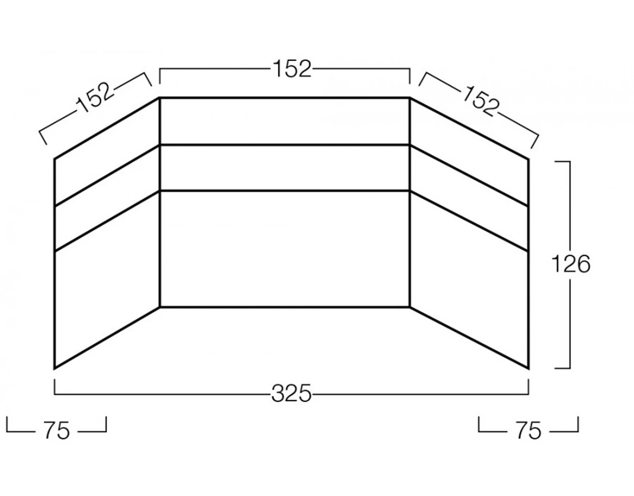 - Dimensions: L456 (3 panels x 152cm), H125cm